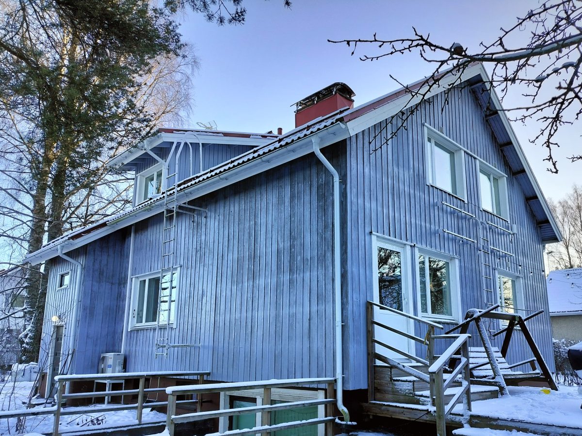 Tässä kohteessa tehdään sekä ulkoverhouksen, että lisäeristeiden vaihto. 1980- luvulla tehty lisäeristys ja verhous oli tehty ilman tuuletusrakoa. Nyt vaihdamme lisäeristeen Isoverin Facade 75mm tuulensuojaeristeeseen ja ulkoverhous toteutetaan perinteisenä ”rakorima” verhouksena.