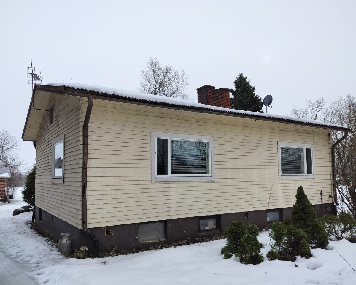 Tässä kohteessa asiakas teki purkutyöt itse, jonka jälkeen Jytkyjen asentaja lisäsi tuulensuojaeristeen, koolaukset ja vinyyliverhouksen. Talon väri pysyi samana, mutta panelointisuunta muuttui vaakapaneloinniksi, jota ei enää tarvitse maalailla.